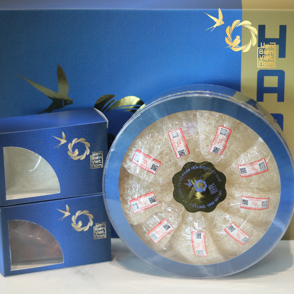 - 1 hộp bao gồm: 100 gram yến tinh chế vụn (tương đương khoảng 10 – 12 tổ/hộp), có kèm theo táo đỏ, đường phèn.